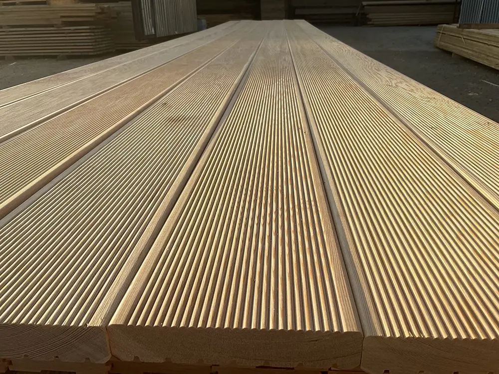 Доска террасная из лиственницы 27х142 применяется для создания прочного влагостойкого покрытия на открытых и закрытых террасах, верандах, бассейнах, площадках для отдыха, садовых дорожках. Террасную доску можно использовать для создания набережных и мостиков. Там, где имеет место высокая влажность или постоянный контакт с водой, лиственница показывает себя как нельзя лучше. Не разбухает, не коробится, не гниет и не скрипит.